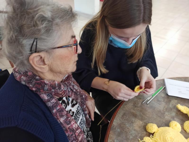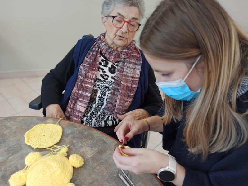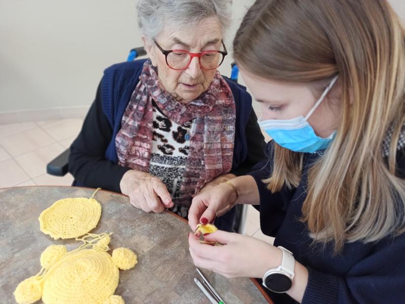 👵🧶Aujourd’hui, nous avons vécu un moment plein de douceur à La Vallée d’Auge. Marine – notre directrice pourtant bien occupée – a découvert l’art du crochet auprès d’une de nos résidentes.